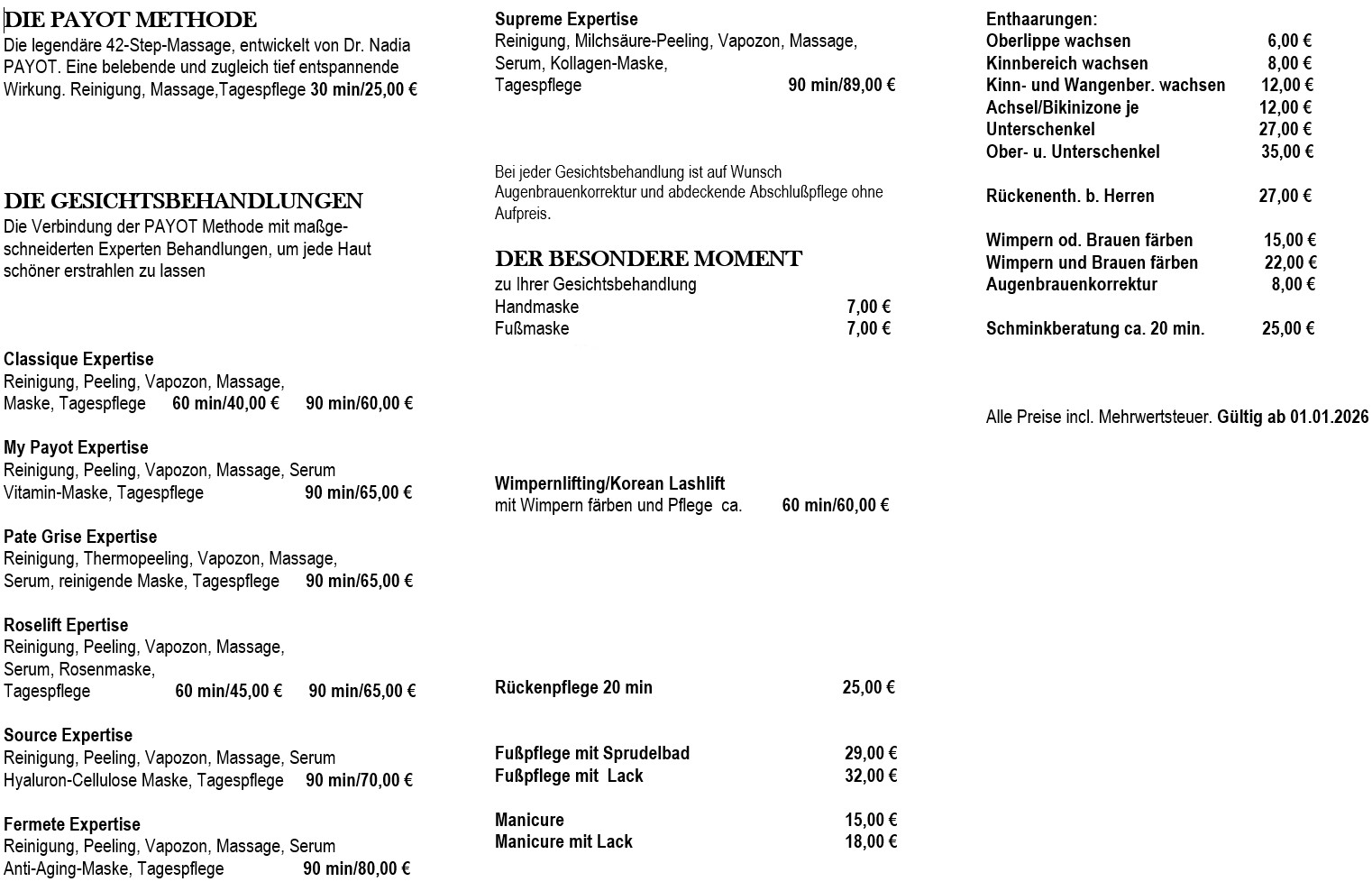 Die Behandlungen werden mit Produkten von PAYOT ausgeführt.